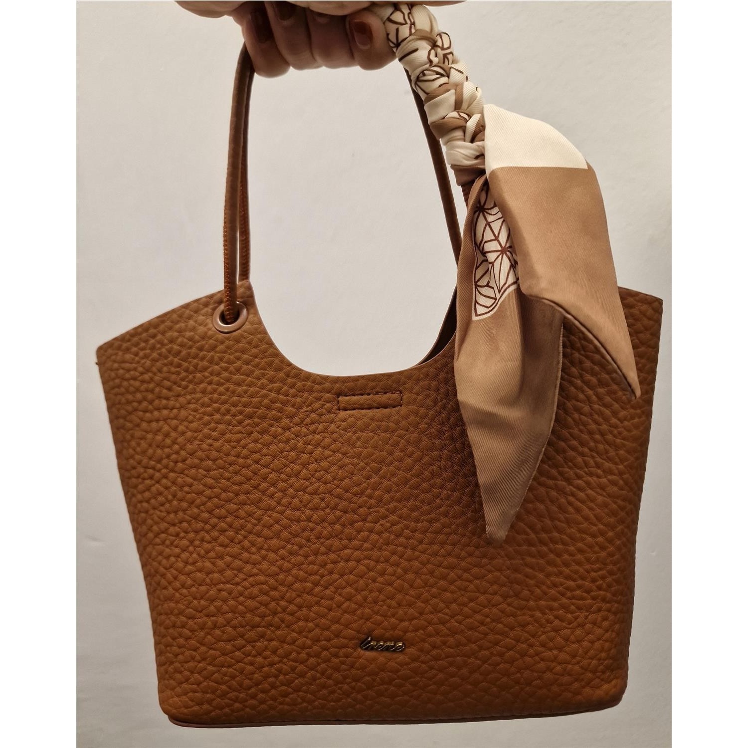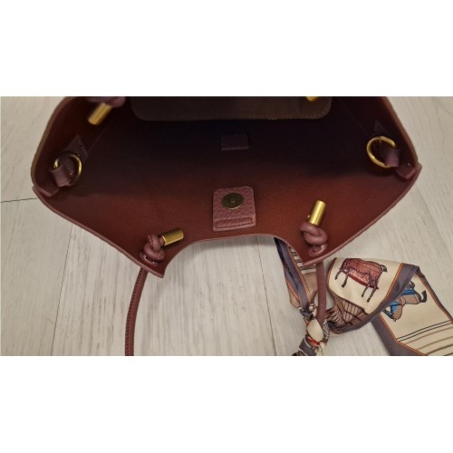 Boloso pequeñio decorado una de las asas con un pañuelo estampado de raso. En el interior tien eun bolsito pequeño de loneta con cremallera para poder llevar más comodamente tus objetos. Viene con un asa larga para pocer llevarlo como bandolera.